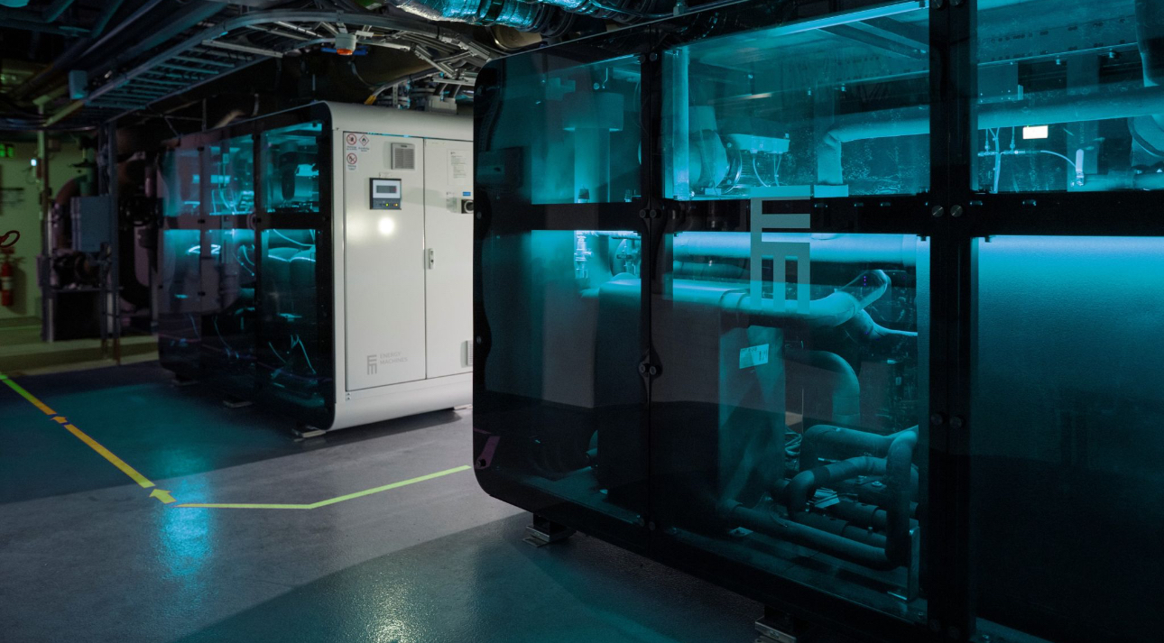 The integrated system has a capacity of 1.3 MW for heating and 1.5 MW for cooling, utilizing 27,670 meters of geothermal boreholes located beneath the building's basement car park to efficiently store energy. Thermal energy will be moved between the building and boreholes via four Energy Machines heat pumps, enabling heat and cold to be seasonally stored and reused throughout the year.